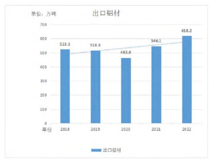 ▲圖1 近5年出口鋁材數(shù)量增長(zhǎng)趨勢(shì)