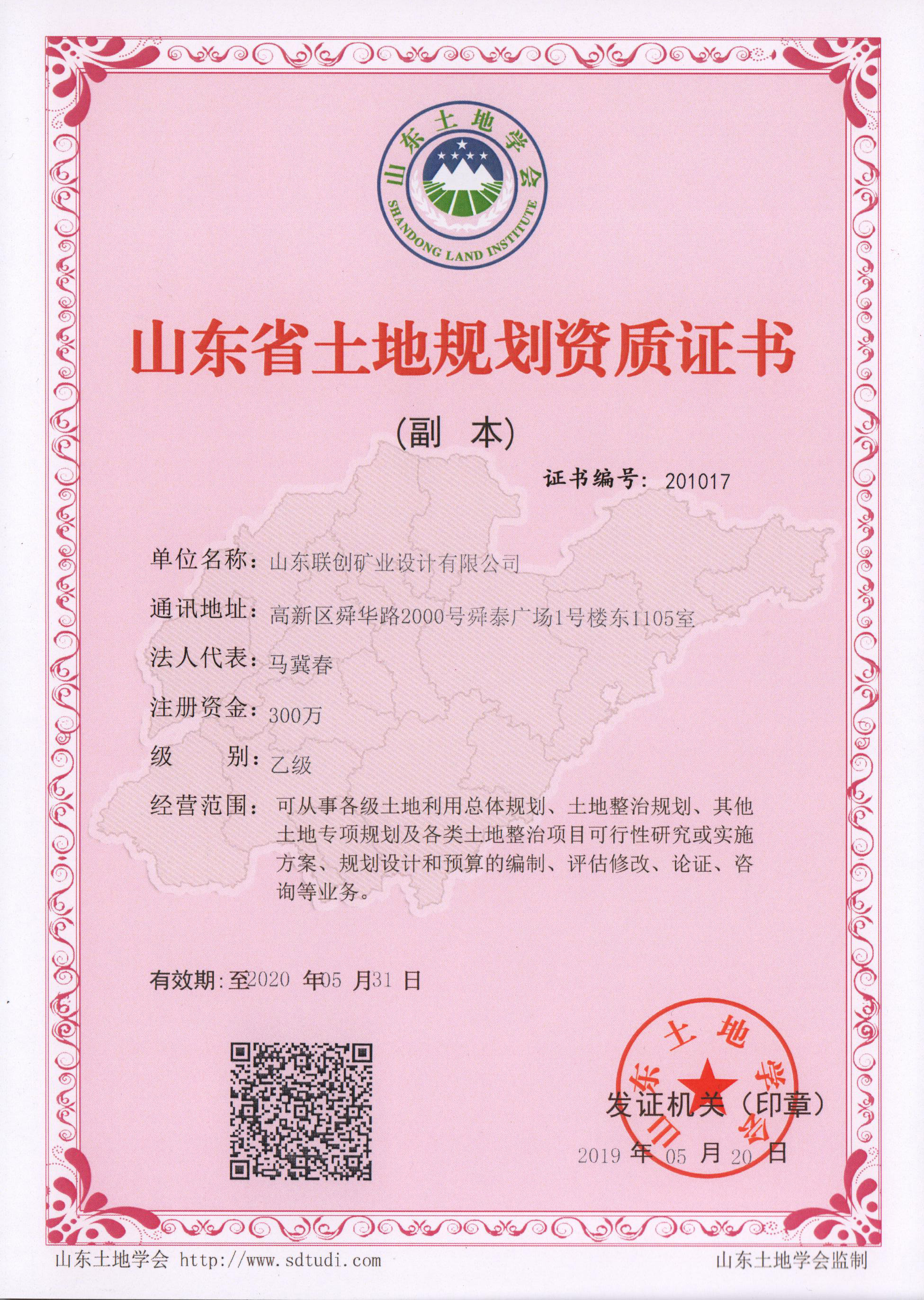 土地規(guī)劃資質證書