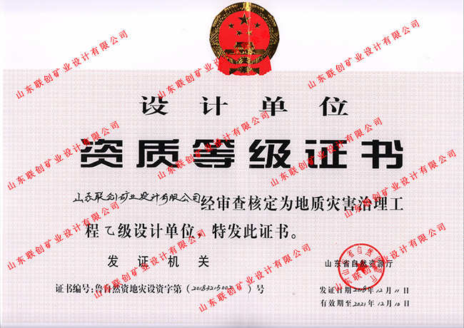 地災(zāi)治理設(shè)計(jì)資質(zhì)證書