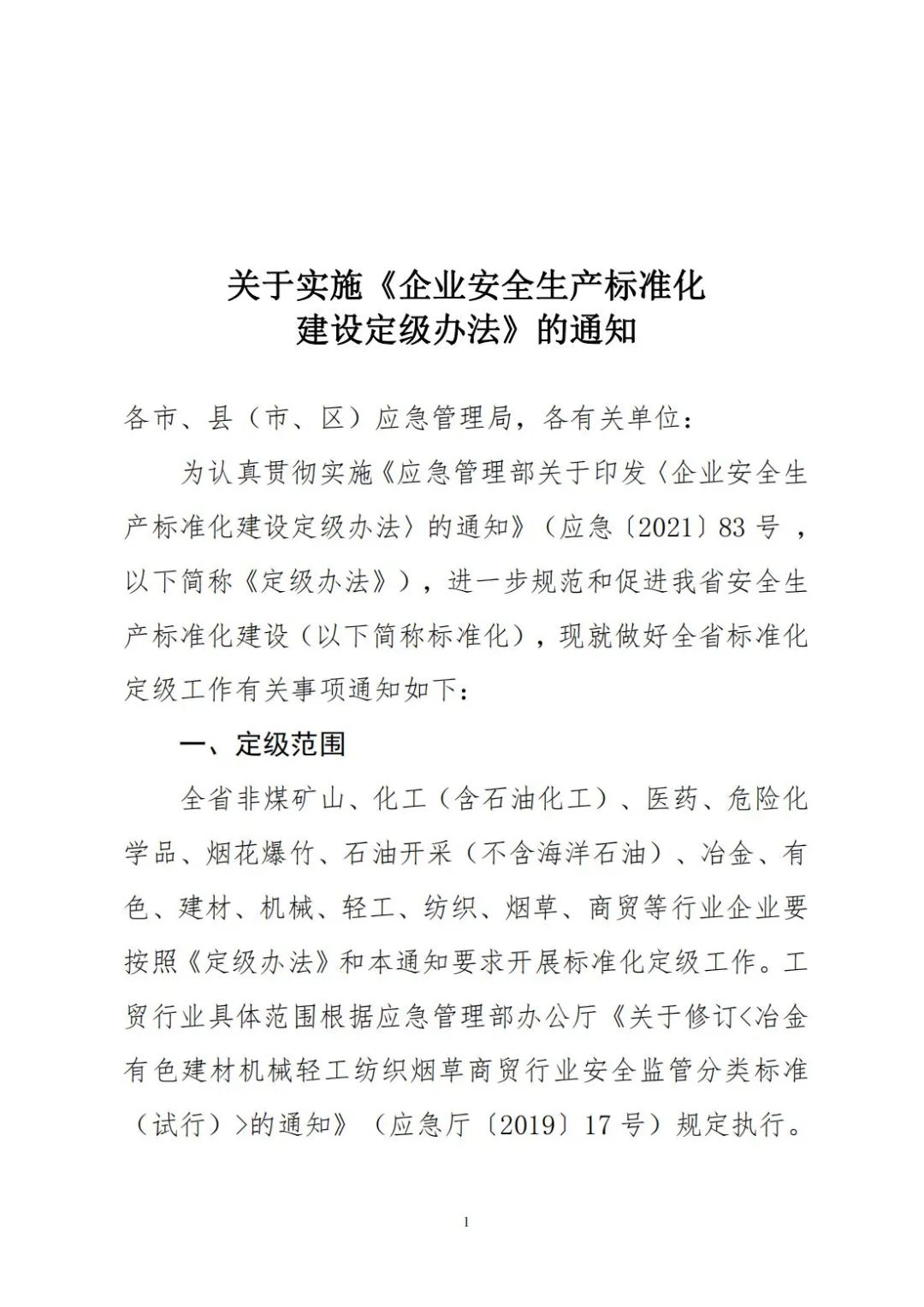 關(guān)于實施《企業(yè)安全生產(chǎn)標準化建設(shè)定級辦法》的通知