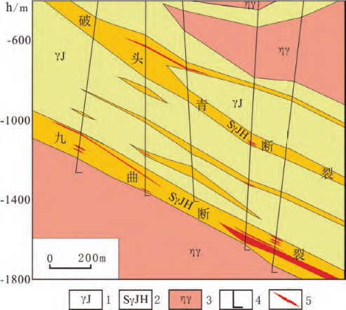 近年來,筆者所帶科研團隊在焦家金礦帶深部施工了3266.06m的科研深鉆(圖5)。