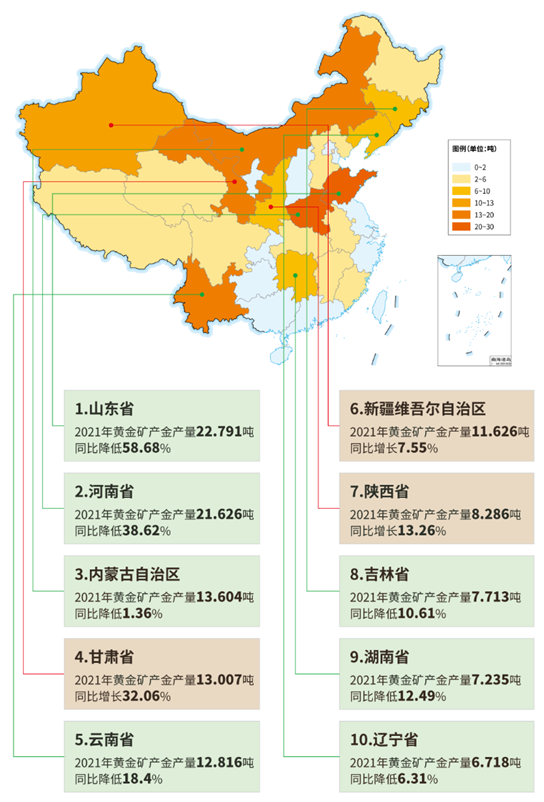 天山西段,從烏茲別克斯坦向東,經塔吉克斯坦、吉爾吉斯斯坦到中國新疆,構成了世人矚目的巨型金成礦帶,即“亞洲金腰帶”。烏茲別克斯坦、吉爾吉斯斯坦等幾個國家在這條成礦帶上發(fā)現了眾多大型、超大型金礦。其中,最為著名的當屬于烏茲別克斯坦的穆龍?zhí)捉鸬V床,該礦是世界級超大型獨立金礦床,遠景資源儲量預估1.7億盎司(5287.6噸),平均品位約3.5克/噸。該礦2022年生產了約1700盎司(約48.2噸)的黃金,是全球第二大在產金礦。長期以來,中天山是“亞洲金腰帶”的核心,但隨著新疆地勘工作的大規(guī)模開展以及找礦突破,卡特巴阿蘇等大型金礦的發(fā)現,讓這條“金腰帶”的東部區(qū)域資源被確切證實,向東延伸進入我國新疆西天山。截至2020年底,新疆擁有金礦儲量637.6噸,位列全國第6位,其中,十三五期間,增長165噸,目前,新疆的礦產資源勘探如火如荼,坐擁亞洲金腰帶,新疆的黃金資源不可估量。新疆黃金的工業(yè)化生產始于20世紀80年代初。1980-1999年的20年間,新疆先后建成了哈密金礦、哈密市金礦、都善金礦、鄯善礦業(yè)公司金礦、石英灘一廠金礦、哈巴河黃金公司、阿希金礦等金礦企業(yè)75個,黃金產量由1980年的3.72公斤猛增到1999年的6.56噸,年平均增長50%。1999年后,受資源危機和金價下跌等諸多因素影響,大多數黃金企業(yè)陷入困境,到2003年,全疆黃金產量下降至4.84噸,黃金生產企業(yè)減少到26家。2003年,隨著黃金價格的上升和優(yōu)惠政策扶持下,中國黃金、招金、湖南黃金等大集團進駐,通過參股、兼并、收購、重組等方式,對新疆的黃金資源進行整合,新疆黃金產業(yè)逐步恢復,至2016年新疆黃金產量連續(xù)12年保持增長態(tài)勢,年均增長13%。2017年,金價持續(xù)低迷、安全環(huán)保壓力持續(xù)增大,以及國家環(huán)保稅、資源稅,以及自然保護區(qū)等生態(tài)功能區(qū)內礦業(yè)權退出等政策的出臺,全國黃金企業(yè)步入轉型升級期,新疆部分黃金企業(yè)逐步退出,全疆規(guī)模以上黃金企業(yè)不足20家,黃金產量大幅下滑。2021年,新疆黃金產量11.626噸,位列全國第五。黃金具有對沖風險和抵抗通脹的天然屬性,在當前全球不確定性增加的大背景下,黃金價值正在獲得重新審視。今年初,全球黃金龍頭紐蒙特世紀豪購,以約178億美元的價格收購澳大利亞金礦商Newcrest Mining;去年國內黃金龍頭山東黃金、紫金礦業(yè)也紛紛出手購買黃金資源,全球金礦生產商對黃金資源的追逐,正在變得異!盎馃帷薄