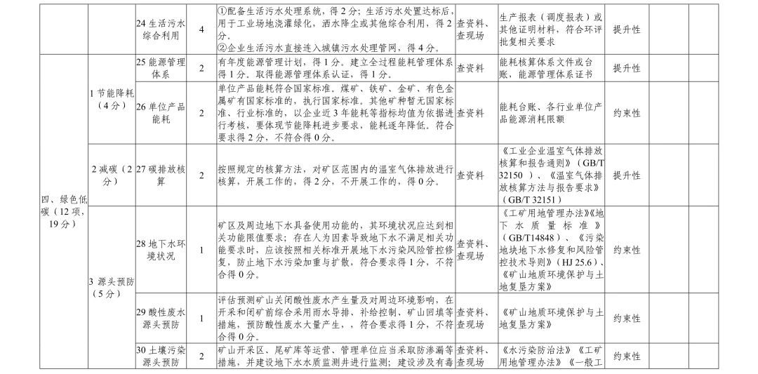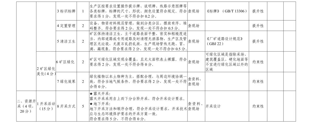 (四)編制報告。評估組綜合內(nèi)業(yè)評估、現(xiàn)場評估情況,討論確定評估結(jié)論,總結(jié)礦山企業(yè)建設(shè)工作亮點,明確失分項及原因并提出改進建議,填寫綠色礦山建設(shè)評分表,編制第三方評估報告,同時將綠色礦山建設(shè)評分表、評估組專家名單、評估會議簽到表、會議記錄、實地核查記錄、實景會議及現(xiàn)場核查影像資料等作為報告附件。