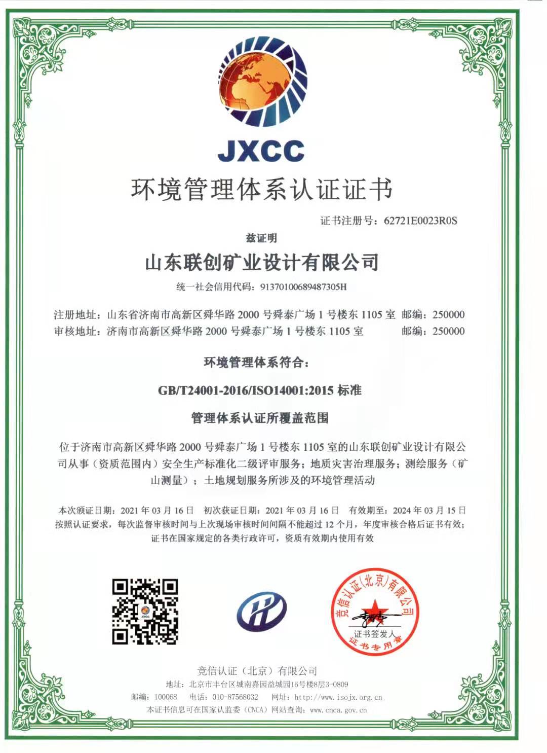 環(huán)境管理體系認(rèn)證證書(shū)